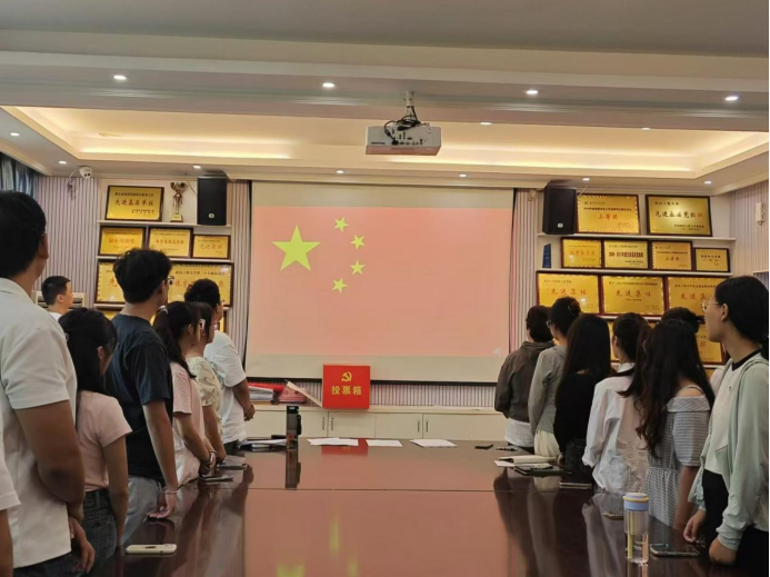 ¾Û»áµÚ¶þÏÓɳÂÀöͬ־ÁìÊÄ£¬Ö§²¿È«Ìåµ³Ô±ÖØÎÂÈëµ³ÊÄ´Ê£¬ÖØÒäÈëµ³³õÐÄ¡£