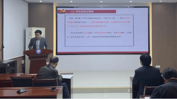 学院研究生事情办公室主任蔡明广首先汇报了学院结业生的基本信息及就业去向。2024届的87名应届结业生的就业意向主要分为三类:一是报考公务员或事业单位;二是进入教育或科研领域,包括思政课西席和向导员职位;三是加入企业党务及理论宣传事情。蔡明广还详细剖析了目今高校的就业形势和现在结业生的就业情形,并从就业事情的目的、战略、增强就业教育和步队建设等方面举行了详细汇报。