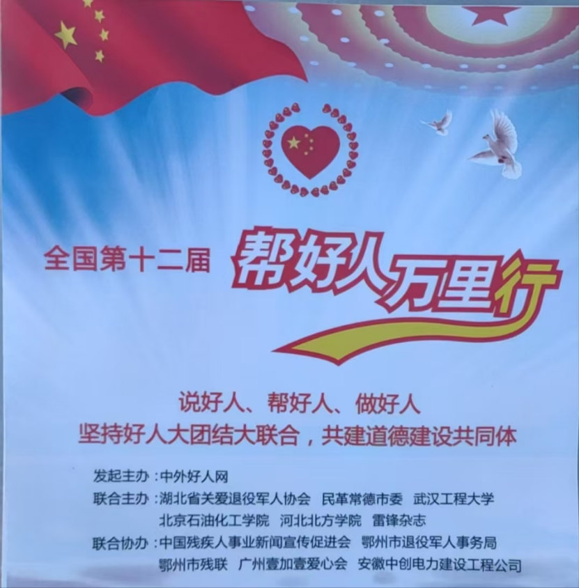 (通讯员:龚莹 李晗)2024年11月27日至28日,腾博tengbo9885官网“红心向党”自愿服务队师生一行,前往湖北省浠水县,加入了天下第十二届“帮好人万里行”大型公益运动。本次运动由中外好人网提倡,并携手湖北省关爱退役武士协会、民革常德市委、武汉工程大学、北京石油化工学院、河北北方学院及《雷锋》杂志社等单位配合举行。