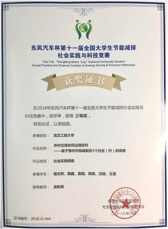 8月7日至9日 ,“春风汽车杯”第十一届天下大学生节能减排社会实践与科技竞赛决赛在武汉理工大学举行 。本届节能减排竞赛吸引了清华大学等418所高校的3881件学生作品参赛 ,参赛人数首次凌驾20000人 。我院社会实践团队撰写完成的社会实践视察作品《农村垃圾协同治理研究——基于鄂州市鄂城新区5个社区(村)的视察》荣获本次大赛三等奖 。