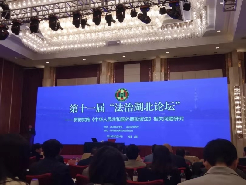 2019年10月30日,第十一届“法治湖北论坛”在武汉市洪山宾馆举行。本届论坛由湖北省法学会、湖北省商务厅主理,湖北省外商投资企业协会协办。湖北省法学会会长傅德辉主持论坛主旨报告会,湖北省副省长杨云彦出席论坛并揭晓主要讲话,商务部外资司副司长叶威作了题为“《外商投资法》的立法配景与外商投资的法治包管”的主旨演讲。省委政法委副书记、省法学会党组书记、常务副会长刘太平出席论坛并主持了论坛总结。我院院长曹胜亮教授应邀出席论坛并作主题讲话。