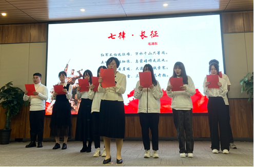 中央红军从江西瑞金出发,历经血战湘江、四渡赤水、巧渡金沙江等战争,总里程约为二万五千余里,最终在甘肃会宁会师。在对上述长征历史举行回首后,周智年教授和学生代表通过颂读毛泽东同志的《七律·长征》再一次配合感悟了伟大的长征精神。