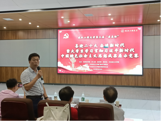 (通讯员 方思齐 颜欣)为周全推进习近平新时代中国特色社会主义头脑“进课本、进课堂、进头脑”,坚定大学生“四个自信”,实现立德树人的基础使命,起劲作育中国特色社会主义事业的建设者和接棒人,引发我校大学生学习贯彻新时代中国特色社会主义头脑的起劲性自动性实效性,5月26日晚,“求是杯”决赛在武汉工程大学盘算机学院图灵报告厅举行。武汉工程大学校党委宣传部副部长赵小硕、腾博tengbo9885官网党委书记舒先林,院党委副书记、副院长(兼)陈俊,副院长常城,副院长金诗灿、团委书记蔡明广、腾博tengbo9885官网研究生思政课教研室主任谢俊、形势与政策教研室主任陈永贵、原理教研室主任韩雪吟、概论教研室主任颜欣出席此次运动。本次运动由腾博tengbo9885官网2021级硕士研究生王梦涵主持。