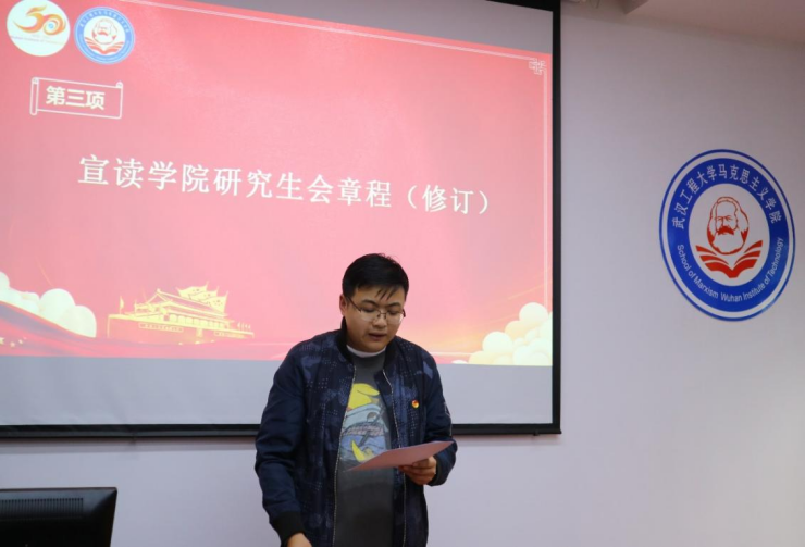 聚会第二项,2021级研究生代表曹松同砚宣读《腾博tengbo9885官网研究生会章程(修订)》,参会代表审议并表决通过了《腾博tengbo9885官网研究生会章程(修订)》。