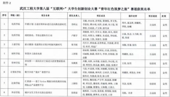(通讯员:肖雅钰 雷翊君)为作育立异创业人才,一连引发大学生立异创业热情,展示立异创业效果,立异创业学院、教务处、学生处、校团委、研究生院团结主理了武汉工程大学第八届“互联网+”大学生立异创业大赛。经学院推荐、校赛组委会组织专家评审,最终评出高教主赛道金奖项目75个、银奖项目115个、铜奖项目127个;“青年红色筑梦之旅”赛道金奖项目10个、银奖项目17个、铜奖项目19个;工业赛道金奖项目7个、银奖项目11个、铜奖项目13个。我院喜获高教主赛道研究生首创组校级金奖1项、“青年红色筑梦之旅”公益赛道校级金奖、校级银奖各1项。