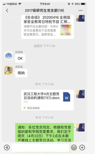 £¨Í¨Ñ¶Ô±ÍòºÆÌ죩2020Äê4ÔÂ22ÈÕÏÂÖç £¬ÌÚ²©tengbo9885¹ÙÍø2017¼¶Ñо¿Éúµ³Ö§²¿Ê¹ÓÃ΢ÐÅȺ×éÖ¯¿ªÕ¹ÏßÉÏÖ§²¿Ö÷Ìâµ³ÈÕÔ˶¯¡ £¾Û»áÓÉѧÉúµ³Ö§²¿Êé¼ÇÍòºÆÌìÖ÷³Ö¡£
